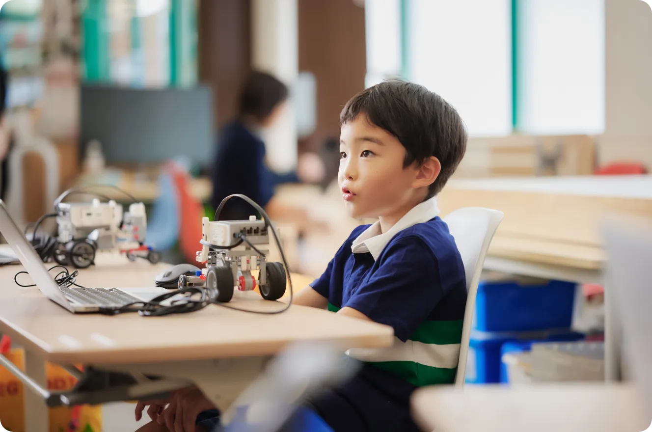 プログラボでは幼稚園・小・中学校向けに、出張授業・校内教室を行っています。プログラボの講師が学校に出向き、ロボットプログラミングの授業を行う「出張授業」は関西・首都圏を中心に、100校以上で実施しています。